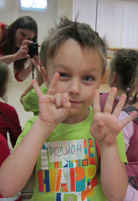 Разминка в самом начале занятия может быть разная. Счёт на пальцах вполне подходит для самого начала урока. Позже можно будет попросить детей показать на пальцах числа больше пяти. А пока можно предложить им показать 4 и 5 другим способом. Скажем, на двух руках: 4 = 2 + 2 или 4 = 3 +1.