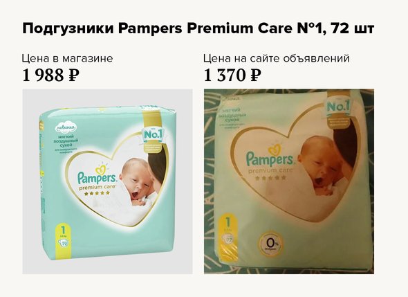 В магазине пачка из 72 подгузников будет стоить с учетом скидки 1988 рублей, а с рук — 1370 рублей или дешевле.