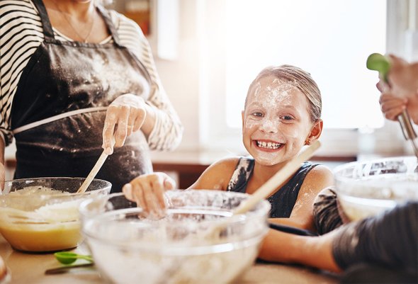 Важно сразу смириться с тем, что идеальной картинки, как в кулинарном шоу из интернета или социальных сетях, не будет: мука может рассыпаться, а скорлупа от яиц — улететь в тесто. Да, это нормально, дети только учатся, ваша задача — насладиться проведенным совместным временем, научить и поддержать интерес к готовке.