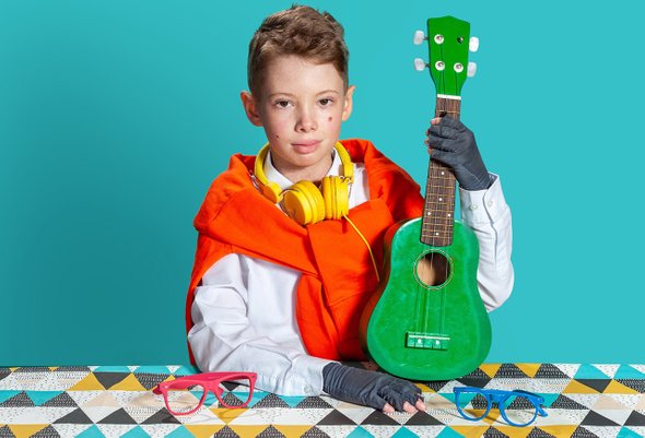 В 7 лет мальчик поступил в музыкальную школу. С тех пор он освоил барабаны, ксилофон, металлофон, вибрафон, колокольчики (да-да, есть такой инструмент), маримбу, пианино, гитару — и акустическую, и электрическую. На инструментах Денис играет в перчатках. Впрочем, так делают многие барабанщики. Раньше мальчик в принципе часто ходил в перчатках, но недавно у него появилась девушка — это стало одним из шагов к пониманию, что его принимают таким, какой он есть. Сейчас Денис может выйти гулять или в школу без перчаток, ничего не стесняясь.