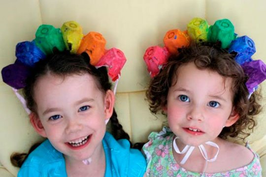 Простая поделка, которая понравится детям. Нужно разрезать коробку от яиц напополам, чтобы ячейки были в ряд, разукрасить их и протянуть ленту сквозь крайние ячейки. Получится яркий ободок, напоминающий корону Статуи Свободы.