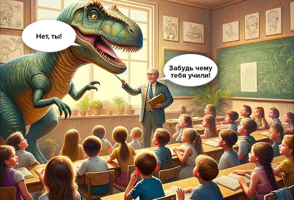- Ну и всем знакомый тираннозавр — считает, что молодой педагог совсем не подходит для современной образовательной системы. И в институте его ничему не учили!