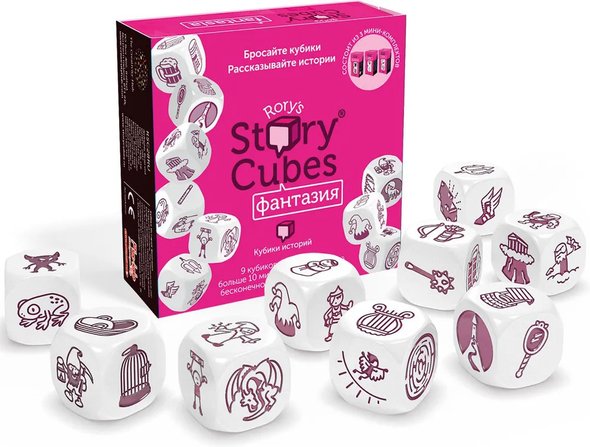 Используйте набор кубиков с изображениями различных объектов и действий. Дети бросают кубики и создают историю, используя изображения на выпавших гранях. Например, если выпали изображения яблока, машины и собаки, ребенок может составить предложение: The dog ate an apple in the car (Собака съела яблоко в машине). Для этой игры можно использовать кубики Rory’s Story Cubes. Они продаются наборами по разным тематикам: фантазия, мистика, первобытный мир, первая помощь, астрономия, Бэтмен, герои, действия и другие.