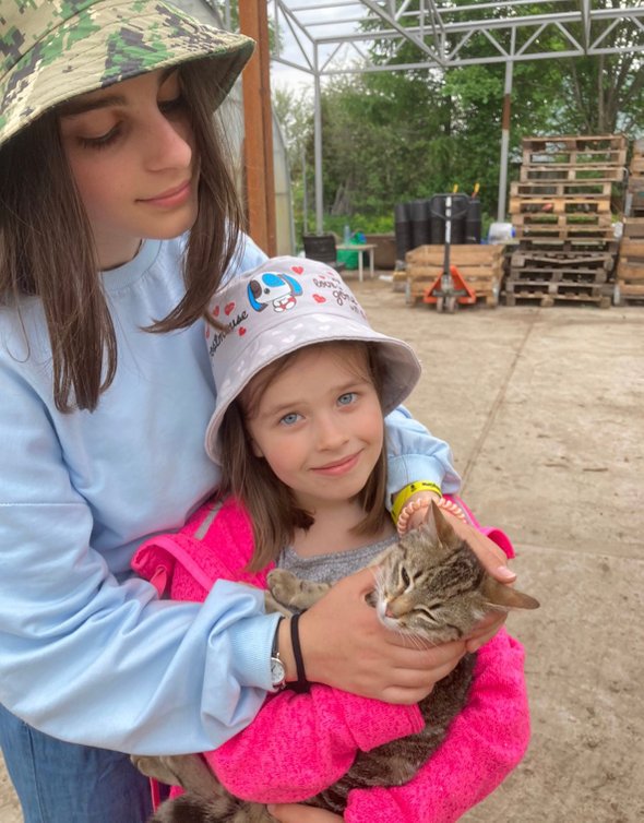 Восторг у Веры и Кати вызвали наши многочисленные животные. У нас живут две собаки, кот, а за пределами дома, в сарае — кролики, куры, утята и козы. Девочки без конца бегают к ним, чтобы покормить или просто понаблюдать. У них всегда есть возможность поиграть с собакой или погладить кота. А я не могу нарадоваться, когда вижу такую любовь своих детей к живым существам.