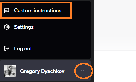 Чтобы полноценно настроить ChatGPT под ученика (например, на ноутбуке в компьютерном классе) — создать интерактивную учебную среду, любые инструкции нужно добавить в специальное окно Custom Instructions. После этого каждый новый диалог с ChatGPT сразу будет учитывать ваши инструкции. Как это сделать?