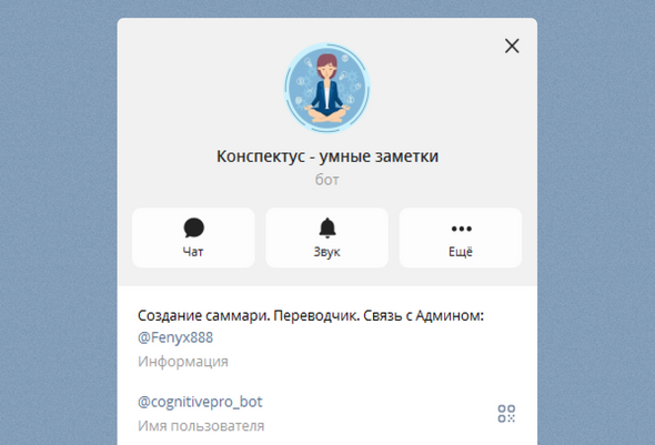 Превращает лекции и документы в структурированные конспекты. Можно отправить голосовое сообщение, аудиофайл, PDF, фото текста или ссылку на видео. В ответ бот пришлет выжимку с основными тезисами — это удобно для повторения перед экзаменом или если нужно быстро разобраться в записи, сделанной на ходу.
