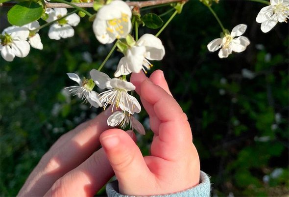 Плюсы челленджа — ребенок всё пробует и видит впервые, а ты вместе с ним. Маленький человек впервые в жизни обнимал березу! Впервые в жизни попробовал персик. Получается, у него каждый день — это «впервые в жизни». И это невероятно трогательно.