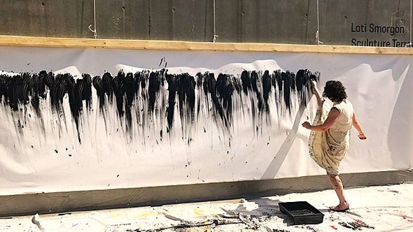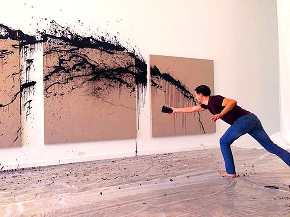 История искусства знает самые необычные формы привлечения к себе внимания. Здесь дано фото, когда кисть художника была заменена пульверизатором с краской.