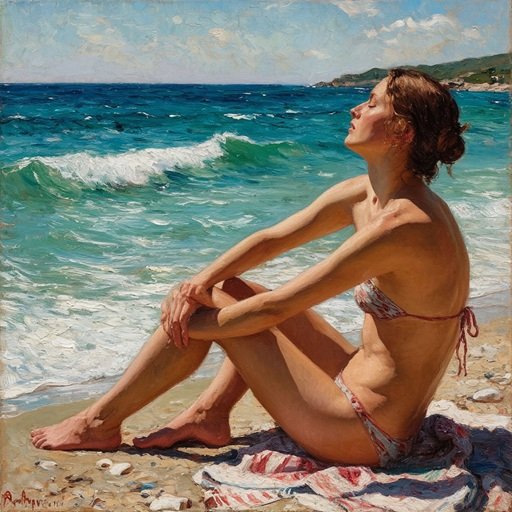 Результат ожидаем, а для ещё одной проверки ИИ по ориентации на попсу я отобрал картину Пикассо «Купальщица, сидящая на берегу моря».
