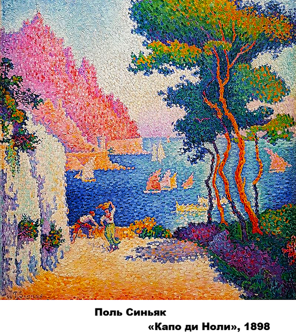 Успех импрессионистов подтолкнул к поиску новых направлений в живописи. Так возникает пуантилизм, где мазок кисти заменили на точку.