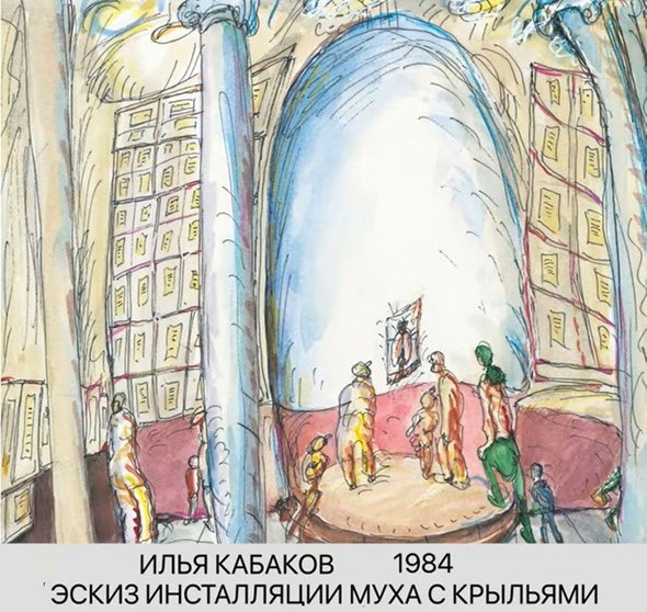 В эскизе Ильи Кабакова изображено, как посетители музея рассматривают картину, на которой изображена муха, а сбоку висят разнообразные комментарии к ней.