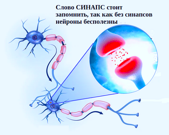 Нейроны нужны для сохранения информации, а мыслительная деятельность возникает после образования многочисленных связей между ними. Сигналы от нейронов к нейронам передаются синапсами, которых насчитывается от нескольких сотен до нескольких тысяч у каждого из нейронов.