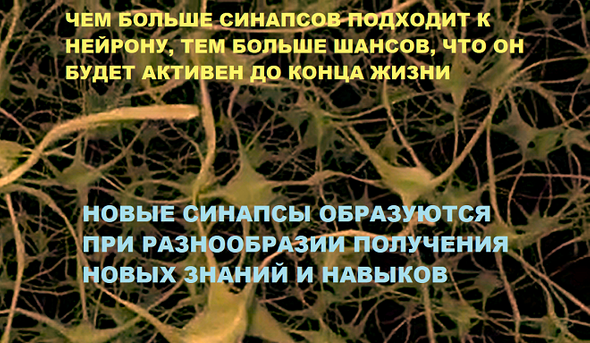 Не будем вдаваться в рассуждения больных людей, так как глупо противопоставлять старое и новое, когда гораздо приятнее прислушиваться к новейшим открытиям ученых. Напомню, что наука строится на опыте, поэтому не будет противоречить любому опыту, а вот обоснование через личный житейский опыт может противоречить науке. В последние годы особое внимание привлекли открытия нейрофизиологов из-за популярности искусственного интеллекта, разработчики которого внедрили в железо то, что раньше было только в мозгах. Но далеко не все знакомы с влиянием открытий тех же нейрофизиологов на развитие педагогики. О нейронах слышали все, но в редких случаях задумывались, как процесс обучения влияет на достижение счастливой старости без тоскливой деменции. Многие просто не обратили внимание на то, что нейроны и в юности, и в старости одни и те же. Об этом далее чуточку подробнее.