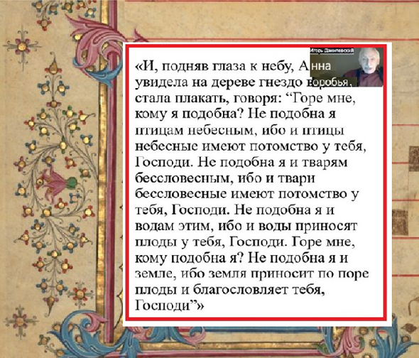 Так для чего же летописец использовал более ранний текст? Вряд ли у кого-то возникнут мысли, что он занимался плагиатом. Причина в другом. Он описывал не реальные события, а через отсылку к знаменитой истории хотел сообщить читателям, что князь Иван Третий решил отправить жену в монастырь и жениться вторично для рождения не обычного сына, а такого, который будет наделён особой исторической миссией. Любой обратившийся к летописаниям в XV веке знал про переживания Анны, матери Богородицы, поэтому именно так воспринимал написанное об Иване Третьем.