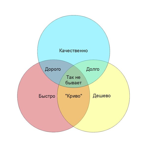Может быть «быстро + качественно», но дорого. Может быть «быстро + дешево», но некачественно. Может быть «дешево + качественно», но долго. Но 3 в 1 не бывает. И если мы гонимся за быстротой усвоения знаний, быстротой освоения навыков, мы теряем самое главное — качество!