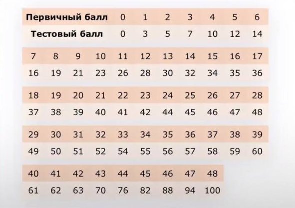 Вот такую обновленную шкалу баллов по результатам досрочного ЕГЭ нашли мои ученики в открытом доступе. Никакой другой информации пока нет, хотя до самого экзамена осталось всего три недели. Сначала, как мы видим, разбег между баллами небольшой. Но ближе к высоким результатам шкала делает финт ушами: теперь разница между первичными баллами уже не 1–2, а 6 баллов.