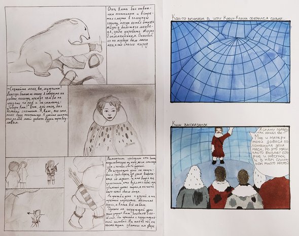 Например, с 6-тиклассниками мы разработали комикс по «Сказанию о Кише» Джека Лондона — отобрали в процессе изучения ключевые эпизоды с участием главного героя, продумали структуру и логику будущей работы, разделились на группы и начали творить! Цитаты для комикса и стиль рисунков дети выбирали самостоятельно. В итоге каждая из групп защитила уникальный мини-проект.