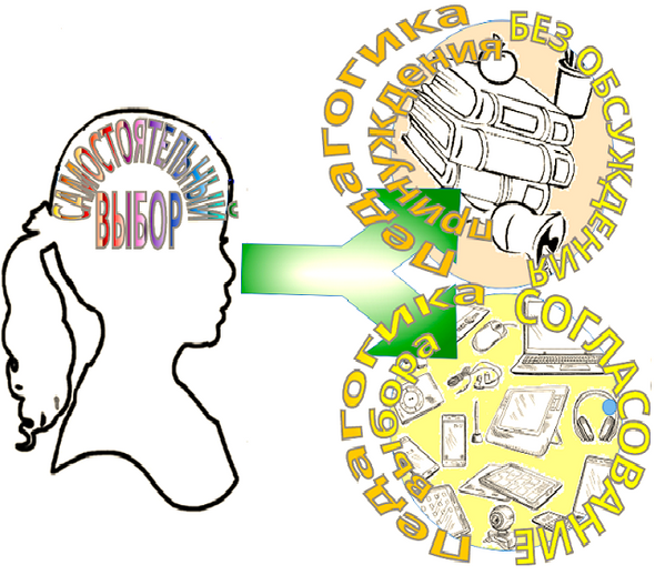 Индивидуальные предпочтения и возможности школьника фактически реализуются через самостоятельный подбор соотношения педагогики принуждения и педагогики выбора.
