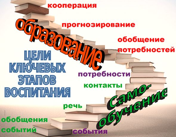 Подведем итоги по первым шести статьям. Ребенок растет, переходя с одного уровня на другой. Он ещё не понимает родителей, поэтому запускается процесс самообучения. Первый этап — это создание условий для понимания речи, который назван принципом обобщения тех событий, которые малыш наблюдает. После освоения речи формируется возможность контактов. Контакты позволяют осмысливать причинно-следственные связи, которые необходимы для усвоения опыта, наработанного многовековой цивилизацией. Образование дает уже возможность выхода на следующий уровень обобщений. Если первый уровень обобщений шел на субъективном восприятии с учетом только личных потребностей малыша, то образование формирует новый тип обобщений, который связан с наличием желаний и потребностей других людей. Сегодня важно начать производить то, что потребуется людям в дальнейшем. Так возникает необходимость в прогнозировании через анализ причинно-следственных связей. Успех в жизни зависит от умения наладить процесс взаимодействия с другими людьми, поэтому конечная цель образования подготовить своего ребенка к умению налаживать кооперативные связи для совместной деятельности.