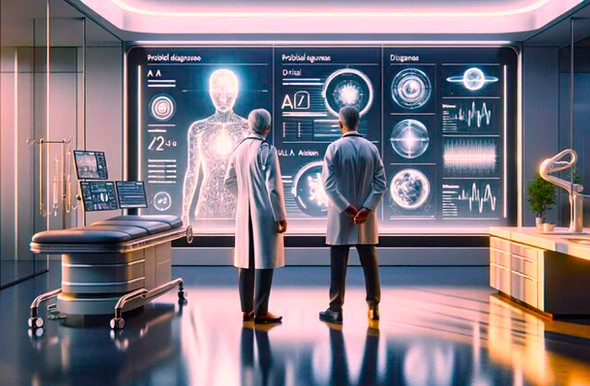 Пациент при записи к врачу заполняет опросный лист о своем состоянии здоровья. Врач вводит те данные, которые получает от пациента устно, а потом назначает дополнительные исследования (анализ крови, анализ мочи, рентген, узи, мрт и другое). Врач дает свои заключения по болезни и назначает курс лечения. Все данные записаны в цифровом виде, поэтому доступны для ИИ.