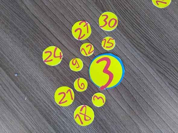 Потом я решила, что начинать изучение «таблицы» лучше с умножения на 1, 10 и 5 (объясняем, что пятерка — половина от 10). Умножение 5 очень простое. Надо прыгать и менять «хвостики» с 0 на 5.