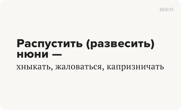 - В сибирских говорах «развесить нюни» значит «расплакаться»;