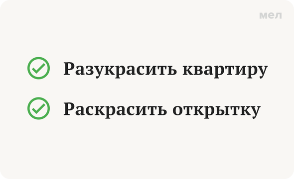 Правильно: разукрасить квартиру, раскрасить открытку