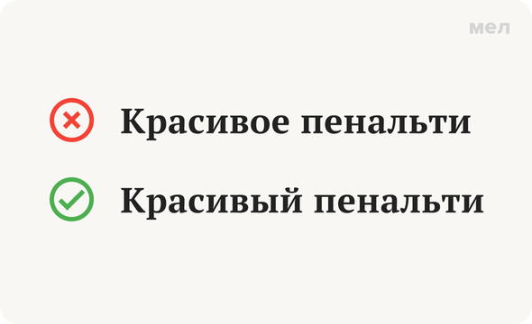 Откуда тогда взялся средний род? Просто в современном русском языке есть еще одно правило: несклоняемые иноязычные существительные, оканчивающиеся на гласный и обозначающие предмет, относятся к среднему роду. Слово «пенальти» под него не очень подходит (это ведь не предмет), но его фонетический облик напоминает слова, которые данному правилу подчиняются: «пальто», «кашне», «худи» и так далее. Скорее всего, именно поэтому в разговорной речи «пенальти» превратился в существительное среднего рода — и эта форма стала такой распространенной, что составители словарей в итоге приняли ее как вариант нормы. В профессиональной среде, впрочем, новая норма не прижилась: спортивные журналисты и комментаторы придерживаются классики, где «пенальти» — это он. Хоть красивый, хоть не очень.