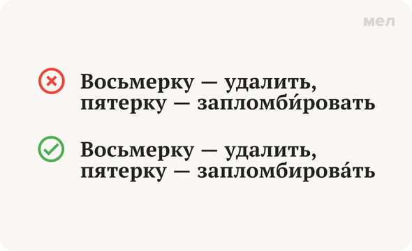 То есть во всех словах, связанных с пломбировкой — зубов ли, дверей или счетчиков, — ударение никогда не нужно ставить на букву «и». Даже если интуиция подсказывает, что это правильный вариант. Не верьте интуиции — он неправильный.