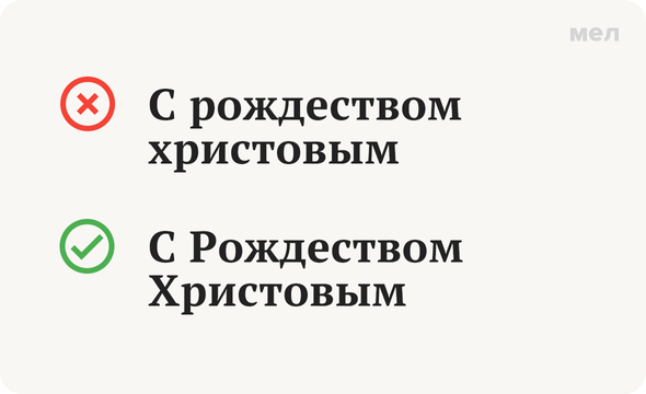 В нашем примере первое слово, «Рождество», — это название праздника, второе, «Христово», — это прилагательное, обозначающее индивидуальную принадлежность и образованное с помощью суффикса «-ов-», которое тоже пишется с прописной буквы.