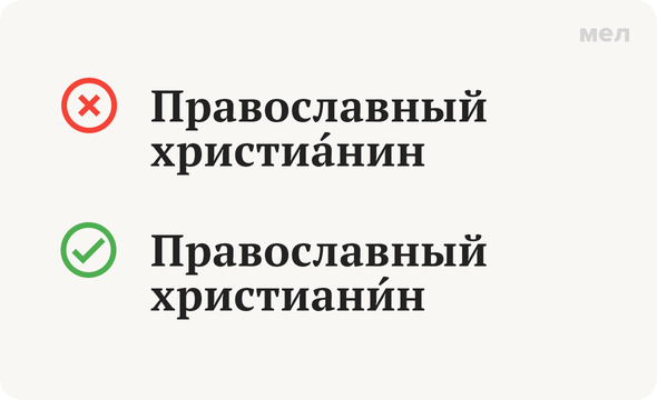Почему же нам так хочется поставить ударение на предпоследний слог? Скорее всего, дело в слове «христианство», от которого образованы другие подобные слова и формы — «христианка», «христиане» и так далее. Ударение там везде ставится на букву «а» в предпоследнем слоге, и по аналогии нам хочется поставить его туда же и в слове «христианин». Но делать мы так больше не будем.