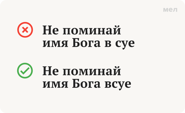 Всуе — это наречие, которое употребляется в значении напрасно, без причины, попусту. Нередко устойчивое выражение не поминай что-то/кого-то всуе выходит за рамки религиозного контекста и провоцирует ошибку в письменной речи — многим хочется разделить его на предлог и существительное. Так делать не нужно. Всуе — это одно слово, и оно всегда пишется слитно, как бы вы его ни использовали.