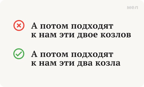 То есть такие сочетания, как «двое козлов» или «двое стволов», некорректны.