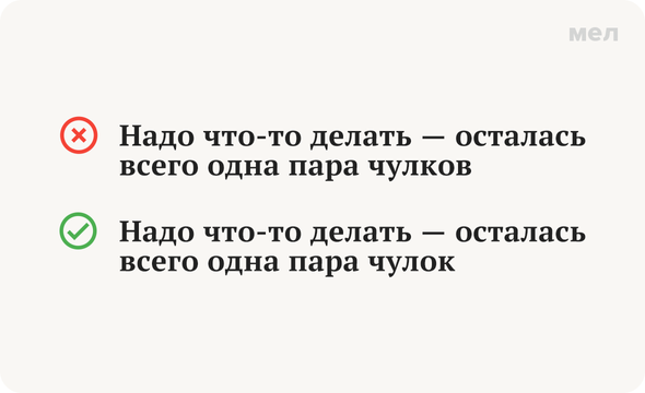 Начнем с элементарного и вспомним, как пишутся «носки» и «чулки» в родительном падеже множественного числа. В школах раньше предлагали запоминать так: чулки на самом деле длинные — окончание короткое («чулок»), гольфы и носки короткие — окончание длинное («гольфов», «носков»).