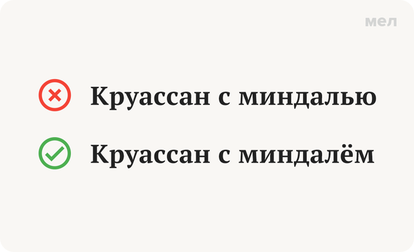 Но все-таки в русском языке слово закрепилось в мужском роде. Сегодня его правильно использовать только так, о чем бы вы ни говорили: о дереве или его плодах — орехах. Правильно говорить «круассан с миндалём», «со вкусом миндалЯ».
