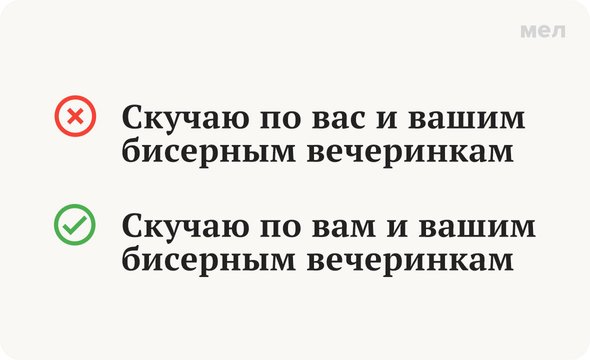 Бывает, вспомнишь добрым словом коллектив с прошлой работы, захочешь написать об этом в не до конца покинутый чат — и вдруг задумаешься: а как правильно — «скучаю по вам» или «скучаю по вас»? С одной стороны, в таком деле можно и ошибиться, с другой — а зачем, если можно разобраться, запомнить и всегда писать грамотно.