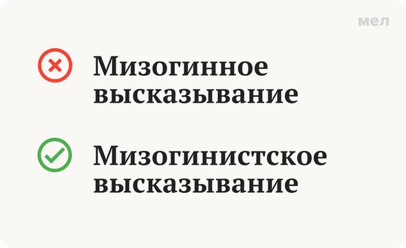 И вот вам сюрприз — прилагательные «мизогинистический» и «мизогинный» не зафиксированы ни в «Русском орфографическом», ни в «Большом толковом словаре русского языка». Так что, несмотря на кажущуюся правильность первого и популярность второго, женоненавистнические высказывания правильно называть «мизогинистскими», а не «мизогинными» или «мизогинистическими».