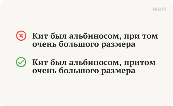 В то же время есть случаи, в которых правила требуют раздельного написания — «при том»: