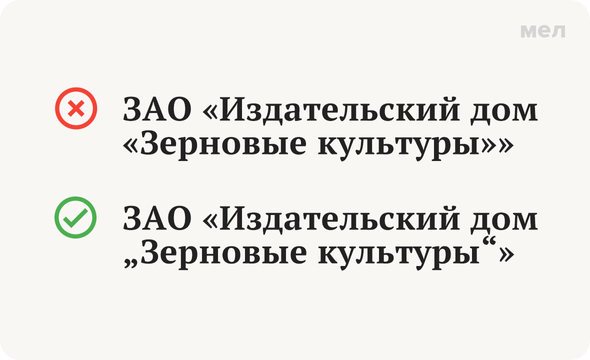 Правильно: ЗАО «Издательский дом „Зерновые культуры“»