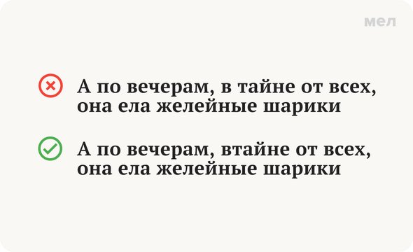 Сложность с этим наречием заключается в том, что слово «тайна» (в отличие, например, от слова «дребезги») — существует. И в некоторых случаях корректным является именно раздельное написание. Рассказываем, как отличить слитное наречие от раздельных существительного и предлога.