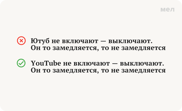 Самый популярный видеохостинг мира на прошлой неделе снова ворвался в новостную повестку — всем ненадолго показалось, что его работу перестали замедлять в России и всё стало как прежде. Но мы поговорим не об этом. А о том, как правильно писать это название на русском языке.