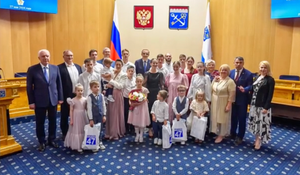 Семью также поздравил губернатор Ленобласти Александр Дрозденко. Глава региона вспомнил, что познакомился с многодетной семьей Кравцовых в 2013 году, когда они мечтали о собственном доме. Тогда он помогал им со стройматериалами. «Любовь, терпение, внимание — главные черты, которые чувствуешь уже в первые минуты общения, и это — главные черты этой ленинградской семьи», — сказал Дрозденко.