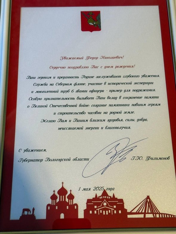 Глава Вологодской области Георгий Филимонов разместил печатное поздравление, адресованное ветерану-участнику «Великой Отечественной бойни» в честь его дня рождения. После того, как ошибку заметили, пост из официального канала губернатора был удален. В совершенной ошибке Филимонов обвинил сотрудников своей пресс-службы. Об этом сообщает RTVI.