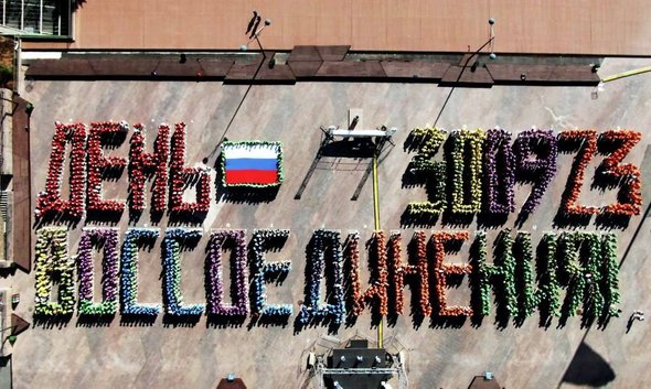 «Артековцы 11-й смены из всех регионов России вместе с вожатыми приняли участие в масштабном праздновании памятной даты. Более 2 тыс. детей стали участниками создания картины размером 1 380 кв. м. Картина включала в себя надпись: „День воссоединения“, флаг Российской Федерации и памятную дату 30.09.23. Ребята вместе исполнили государственный гимн Российской Федерации», — рассказали в пресс-службе МДЦ.