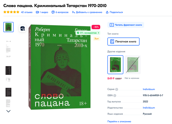 В России закончилась в продаже книга журналиста и писателя Роберта Гараева «Слово пацана. Криминальный Татарстан 1970–2010-х», по которой снял свой сериал режиссер Жора Крыжовников. Об этом сообщают «Ведомости».