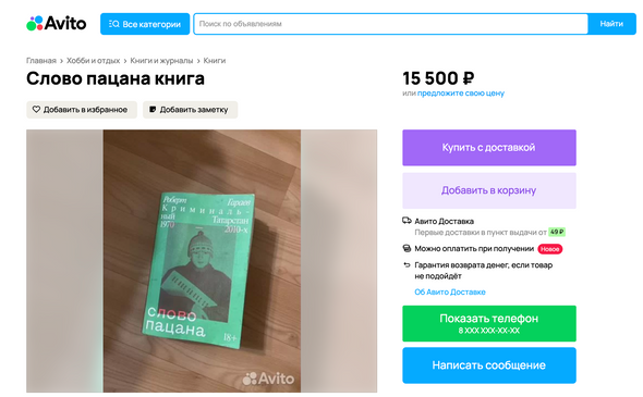 При этом книгу активно перепродают на «Авито» по цене от 750 до 15 500 рублей.