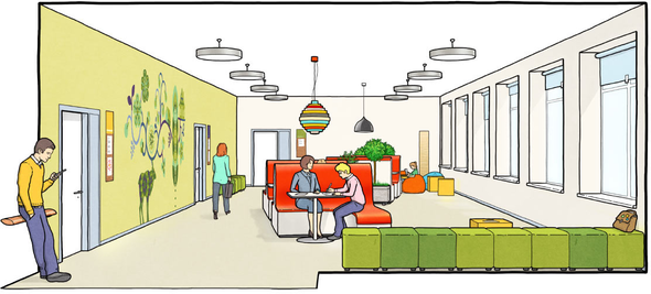 Дизайнеры обратили внимание и на мелочи интерьера: в руководстве рассказано, как лучше разместить крючки, вешалки, мусорные ведра, мягкие подушки, чтобы школьные помещения стали удобными и уютными.