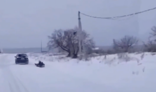 В Алтайском крае задержали водителя внедорожника, катавшего двоих детей на тюбингах, привязанных к машине