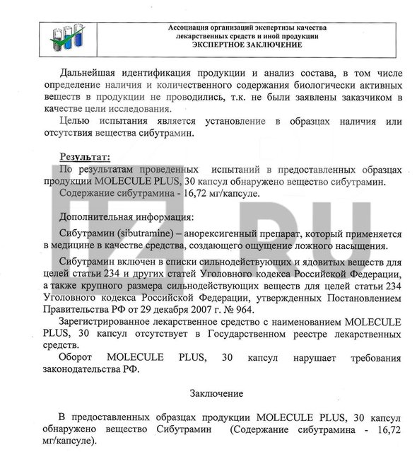 «В связи с появившейся в СМИ информацией о том, что рекламируемый в соцсетях препарат для снижения веса „Молекула“ и „Молекула плюс“, в котором обнаружено вещество сибутрамин, Роспотребнадзором в адрес редакции подготовлено официальное письмо с требованием незамедлительно предоставить все имеющиеся документы, подтверждающие указанную информацию, в том числе: о наименовании юридического лица и/или индивидуального предпринимателя, осуществляющих реализацию небезопасной продукции на территории Российской Федерации», — сказано в заявлении ведомства.