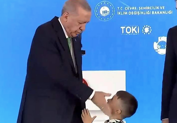 После выступления президента с торжественной речью на сцену пригласили семьи. Первыми за подарком от президента поднялись дети. Пятилетний мальчик подошел к президенту и молча посмотрел на него. Эрдоган дал ему легкую пощечину, после чего мальчик пожал руку руку главе государства. Только после подсказки взрослых ребенок понял, что нужно поцеловать руку президенту.